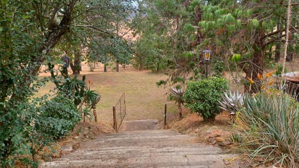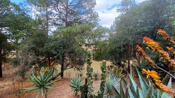 Located in a quiet neighborhood of Machadodorp on 5948 m2 land size (there are 2 stands on one title deed). The property overlooks spectacular trees and boasts views of the valley and low maintenance extensive, indigenous garden. This is a seamless indoor-outdoor living! From an entrance hall on the right, a wide corridor leads to spacious 2-receptions areas an oversized kitchen. The lounge with fireplace opens up onto covered patio and extends through double door to the well sized dining room with build in wall-unit. On other side of the passage there are 6-bedrooms and direct access to the double-tandem garage. There is a well-sized master bedroom with en-suite full bathroom and ample of cupboards space. Five-additional double bedrooms and one full- bathroom are in this part of the house. Each bedroom offers built-in cupboards or wall units. Next to the garage there is a separate laundry area with shower. The property has as well a bachelor flat let / or staff accommodation and aluminium windows through out. There is space for ample of visitors parking on the property via 3-access gates. Please call for the private viewing.
