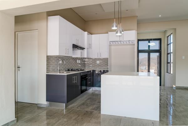 A scullery and laundry room is tucked away strategically adjacent to the kitchen and dining room with sliding windows over the counter for convenience to pass the dinner dishes seamlessly into the scullery. The scullery has space for dishwasher, washing machine and tumble dryer.