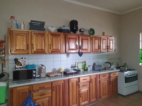 3 Bedrooms, 2 Bathrooms, a lounge with a fire place, open plan kitchen, double garage and a big enough carport to fit in 4 vehicles on a big stand.