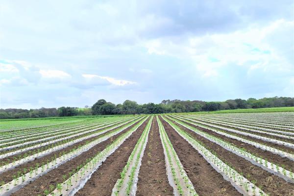 Plaas met produksiepotensiaal vir groente, suikerriet en neute.