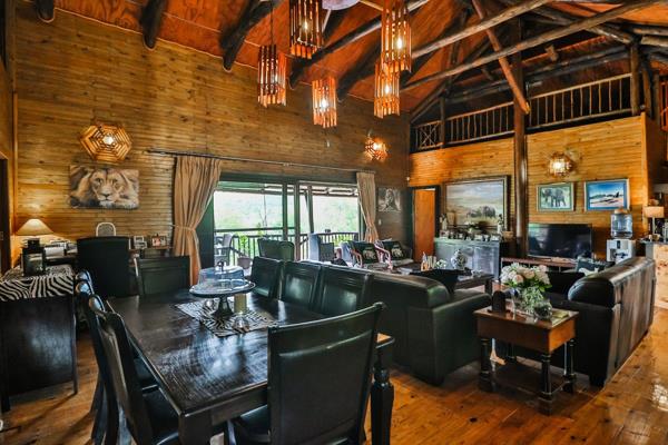 Immaculate wooden log home where you can just move in. Offering you a magnificent view onto Kruger and the Crocodile river within walking distance to the famous Kambaku Golfcourse.