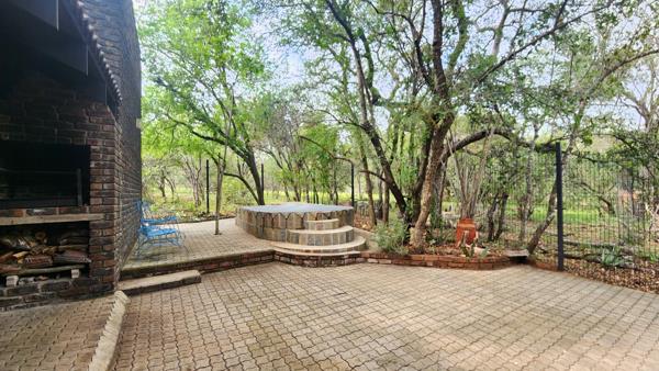 The front patio with build in braai is leads onto a secure fenced front garden with swimming pool. There is also a store room at the rear of the house and a extended car port on the other side of the house.