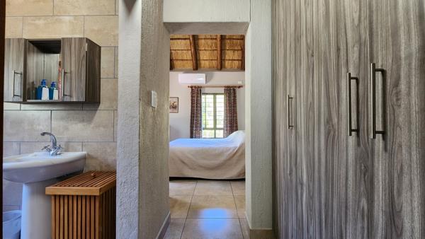 This beautiful excellent maintained 2 bedroom house is located in a quiet are bordering parkland on 2 sides of the property. Both bedrooms is quite big in size and both have en-suits. The open plan living area consist of the kitchen, a pantry, dining and lounge are. The floors are tiled with beautiful tiles. There is also a loft of 24 sq.m which can be utilised for extra sleeping space or an office area. The lounge leads out onto a large undercover patio where you can sit and enjoy the sounds of nature. The widows and sliding door is fitted with Clearview screens.