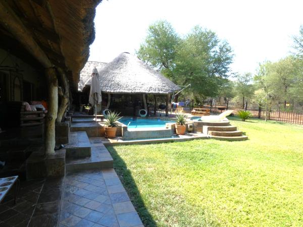 An amazing find in Marloth Park! A super sized home designed for fulltime living featuring 3 bedrooms, 4 bathrooms, 2 lounges, kitchen, dining room and an outdoor entertainment area To Die For.
