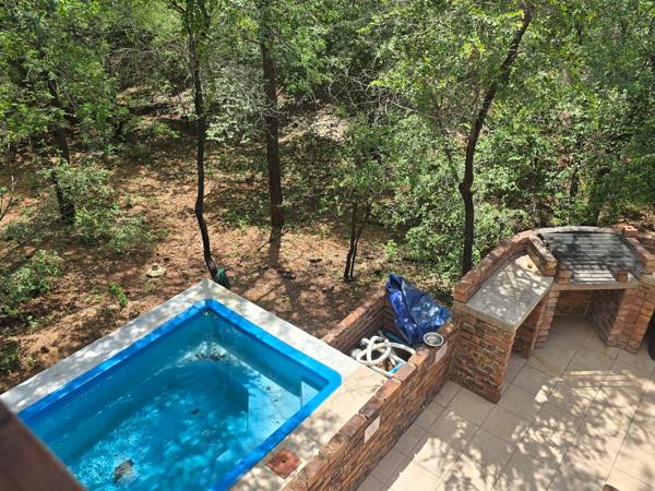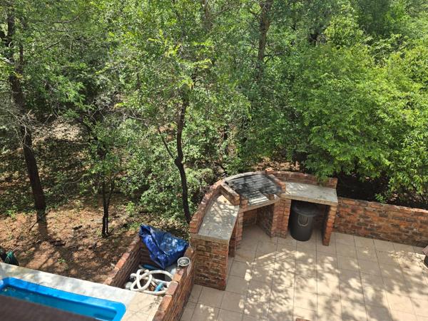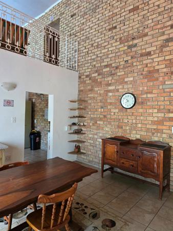 This family home offers parkland on 2 sides, perfectly situated not far from the tar road. This home offers plenty of room for visitors, entering you will find a dining room with adjoining entertainment area with bar opening up onto the barbeque area with a pool. The Lounge is connected to a undercover balcony that makes its a delight for entertaining. The heart of the home is the kitchen with gas geyser and huge walk in pantry. There are 2 downstairs bedrooms, one on suite and the other with bath, toilet, basin and washing machine connection. The linen cupboard is a spoil. There''s a large bedroom upstairs with ensuite bathroom.. The spacious loft area can be another bedroom or entertainment room also with an undercover balcony.