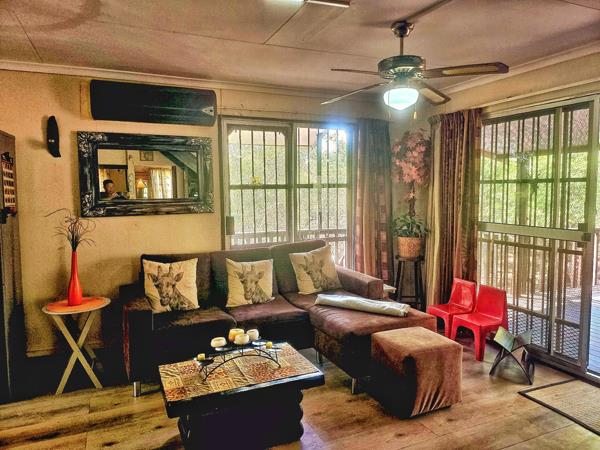 Venturing to the first floor, you''ll be greeted by a spacious deck that offers breathtaking views of the surrounding bush, enveloped by majestic trees. The open-plan lounge and kitchen are perfect for entertaining family and friends while preparing delicious meals. This level also includes two bedrooms and a generously sized bathroom, featuring a bath with a delightful view of the bushveld and a separate shower. New laminate flooring installed just a week ago, brings light to the home.