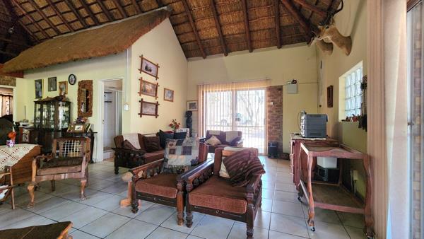 Set on a generous 2,700m² stand, this 148m² thatch home offers a fantastic opportunity to create your ideal bushveld retreat. The property features an open-plan kitchen, dining and lounge area, a guest bathroom, one bedroom with en-suite bathroom, a second bedroom, and a loft area that can be used for additional sleeping space.