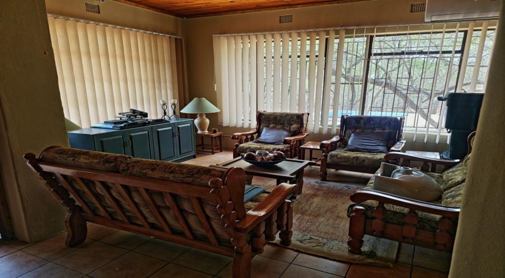 The home features a welcoming open-plan living and dining and kitchen area, and three bedrooms designed for relaxed, easy living. The patio is perfect for outdoor entertaining or simply enjoying the sights and sounds of the bush where zebra, kudu, and warthog often wander by.