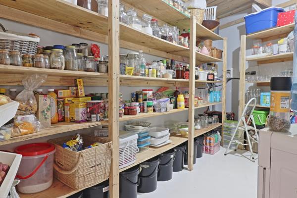 The heart of the house is a very well equipped kitchen with huge gas stove and electrical oven, a pantry to dream of with lots and lots of shelving, a washing machine connection and storage place for everything else.