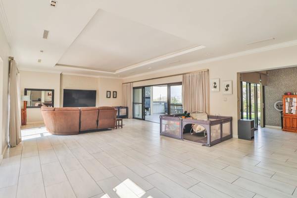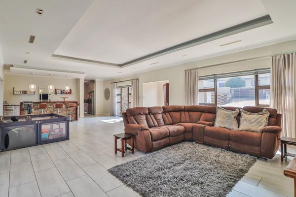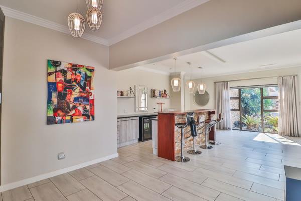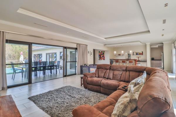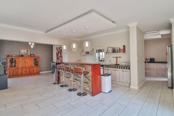The living area, with bar, opens onto a large patio with built in braai and pool, making it an entertainers dream. The kitchen and scullery are large and well designed.