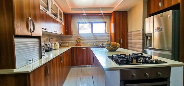 Modern classic home. From the double volume entrance the tone is set, clean lines & lots of light pervade this immaculate home. Expansive living areas interflow seamlessly to the entertainers area with built in braai. Open plan designer kitchen is equipped with both an induction and a gas stove. A separate scullery connects to the laundry room for added convenience. The lower level has a luxurious and generously sized main bedroom with a dressing and en-suite bathroom for added comfort.