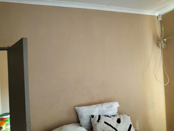 it offer the following: 3 bedrooms, 1 bathroom, a living room and kithen. outside you have a carport, paved, wall with electric fence.