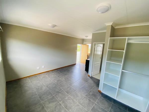 The comfortable bedroom includes built-in cupboards and benefits from natural light, ensuring a warm and welcoming atmosphere. The bathroom is clean and well-maintained, complete with a shower and all essential fixtures.