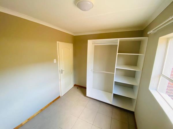 The apartment features two well-sized bedrooms filled with natural light, one modern bathroom, a functional kitchen with modern finishes, and an open-plan lounge area that is ideal for relaxing or entertaining. The unit is set within a fully walled complex with a plastered exterior, providing extra security and peace of mind.