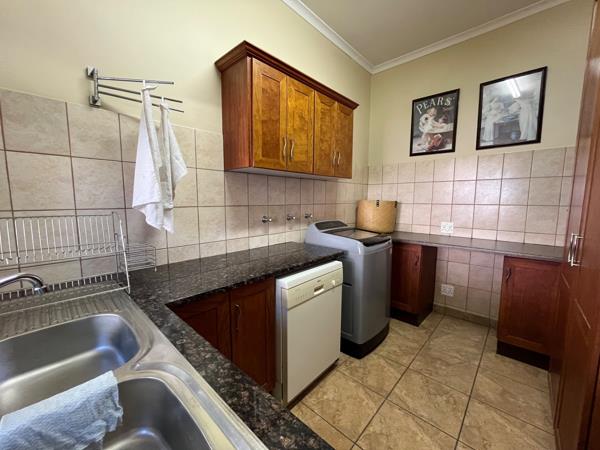 From the moment you step through the welcoming entrance, youre greeted by spacious, light-filled interiors and an easy-flow layout designed for both everyday living and relaxed entertaining. The kitchen is fitted with granite countertops, solid wooden cupboards, a gas hob, and a separate scullery the kind of space that brings family together.