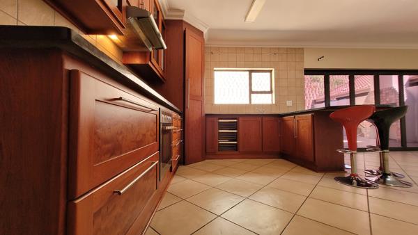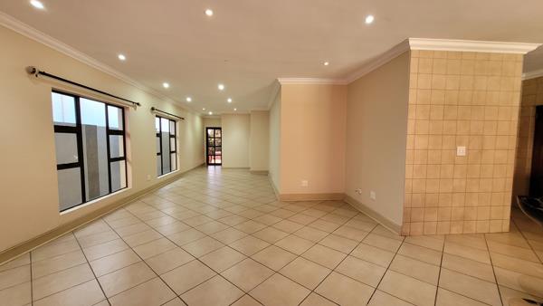 The open-plan living area and kitchen create a welcoming flow that extends to an uncovered patio with a built-in braai and a neat, easy-to-maintain garden, ideal for relaxed outdoor living. Additional features include air conditioning and a double automated garage.