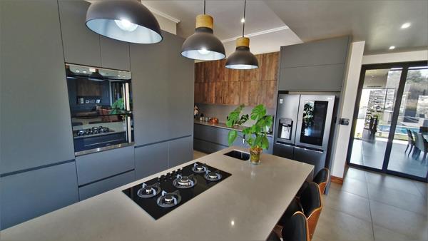 The kitchen is a chef''s delight, boasting top-of-the-line finishes and appliances. The open-plan living area extends seamlessly outdoors to an impressive entertainment space with built-in braais and a private pool.