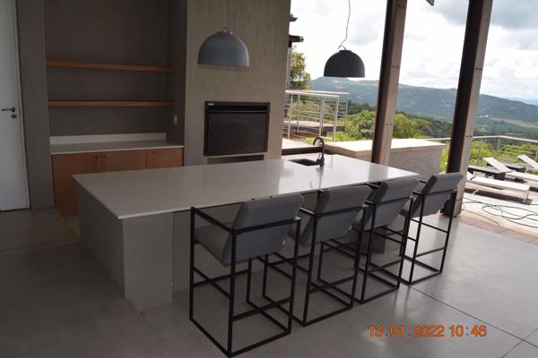Nature Reserve Estate Living. Very luxurious six bedroom, and five full bathrooms. This is an entertainers dream home. Pure luxury. Kitchen and living area lead to an open plan living, dining and sitting area, which also leads out onto a covered balcony, an sparkling pool, with stunning views of the reserve. Six huge bathrooms with open air showers as well as full bathrooms. Cellar, office space, every detail in the home has been carefully thought out. Double garages and total privacy. Includes all furniture