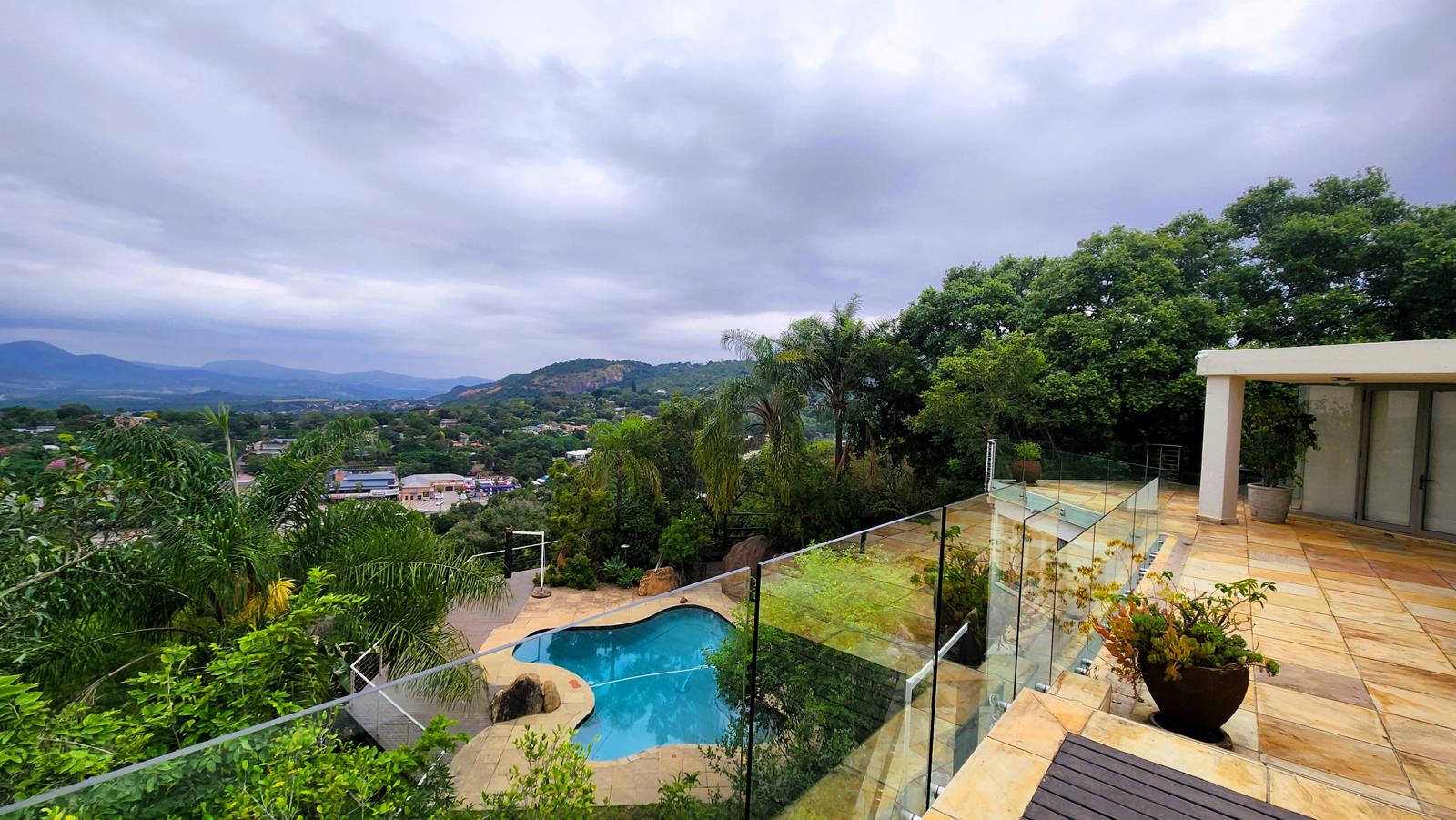 Perched atop an exclusive hillside in Nelspruit Central, this exceptional double-storey home offers unparalleled panoramic views and an air of timeless elegance. A long, winding driveway builds anticipation before unveiling this magnificent residence, undoubtedly one of the finest vantage points in the city.