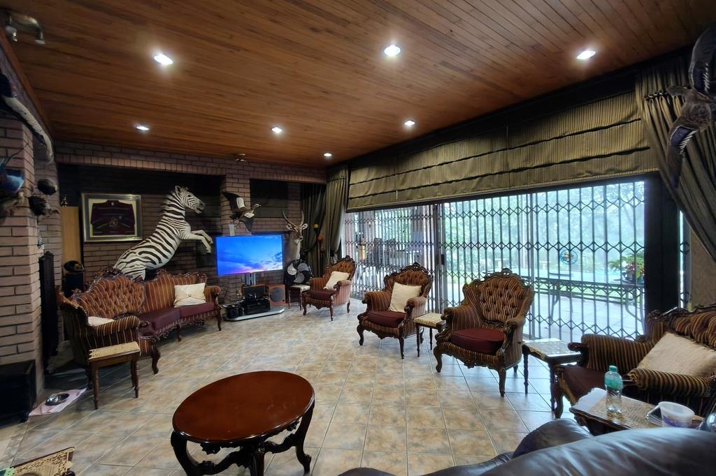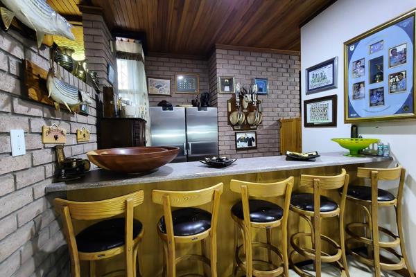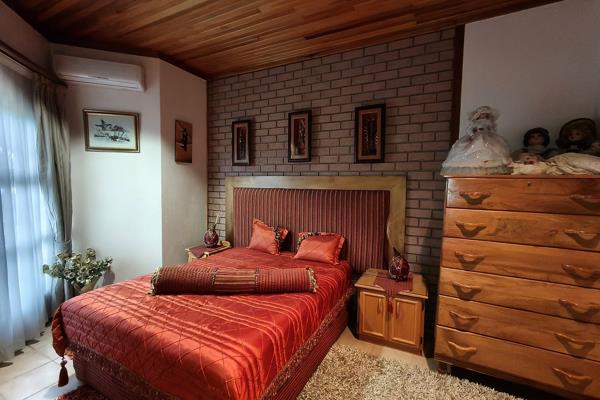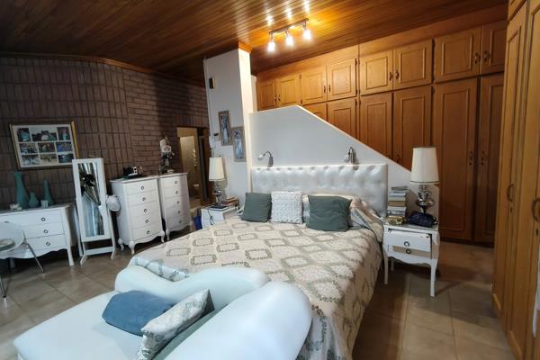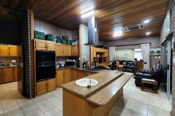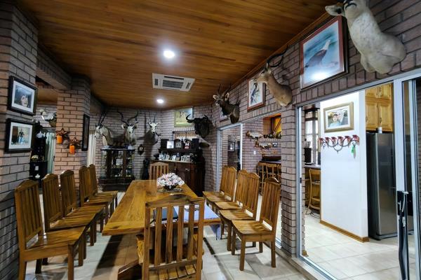Enjoy a private outdoor entertainment area with a covered patio, swimming pool, and mature garden filled with birdlife. Extras include a coffee/liquor bar, 3 automated garages, a large workshop, double shade-net carport, staff quarters, two Wendy houses (one with a bathroom), and strong security with electric fencing, alarm system, and trellidoors.