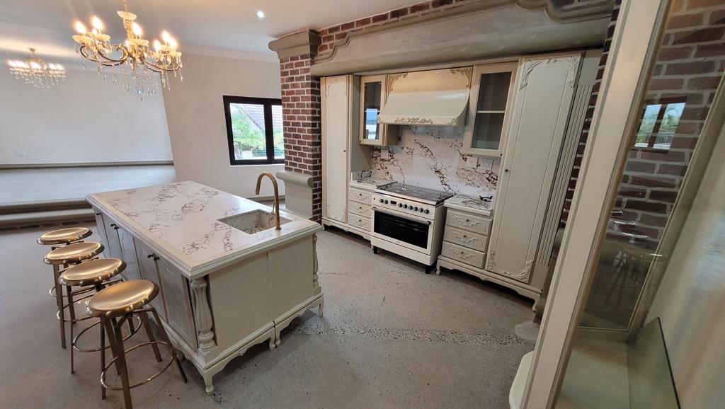What an impressive house with most wonderful views. Mindfully designed with a touch of elegance. Four very spacious bedrooms with 4.5 bathrooms. Open plan kitchen / living area walking out on a balcony with a braai area and swimming pool. Private lounge. The kitchen has marble tops fitted with a Ferre gas stove, extra to the kitchen it has a scullery, pantry and laundry. Three automated garages.