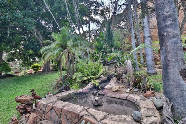 The lapa 60Sqm forms the centerpiece in this manicured garden surrounded by water features and lush green lawn.