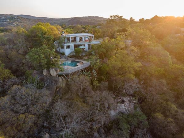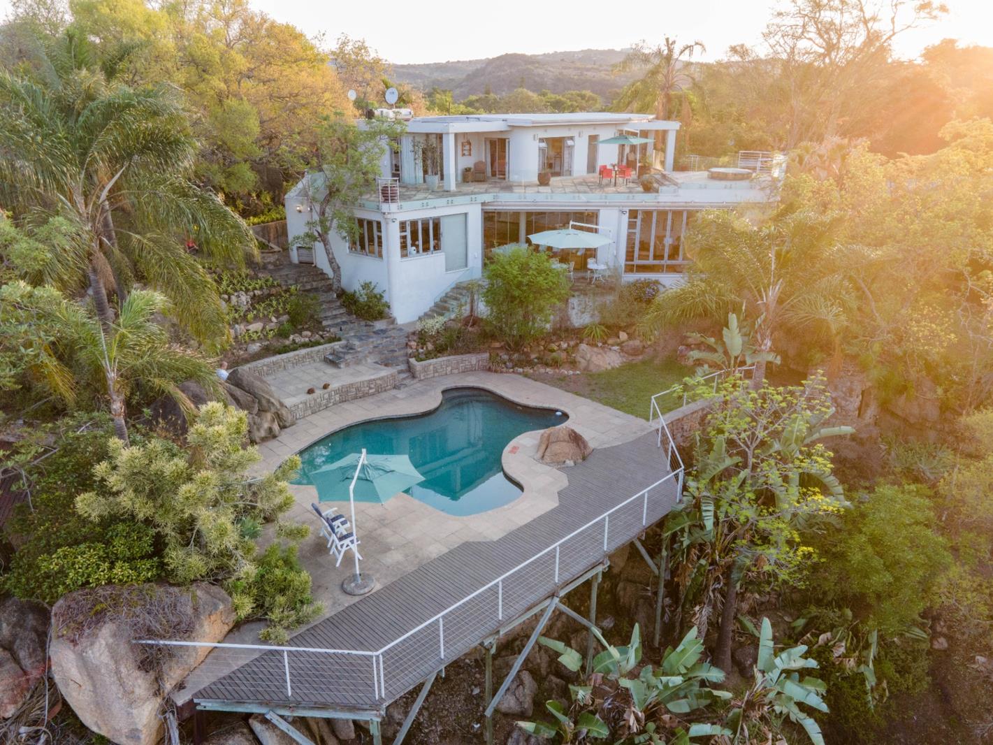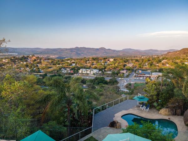 Almost every room boasts breathtaking panoramic views over the surrounding Lowveld, through 3 extra-large living areas, gourmet kitchen with ample cupboards, gas hob and separate scullery & pantry, all spilling out onto large patios, swimming pool, deck and natural gardens.