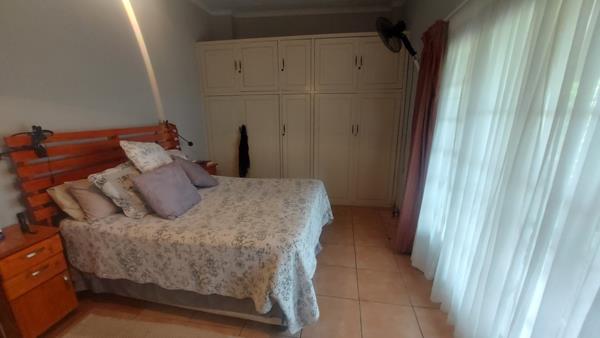 This house boasts three large bedrooms with built in cupboards, tiled floors, burglar bar windows and two bathrooms.