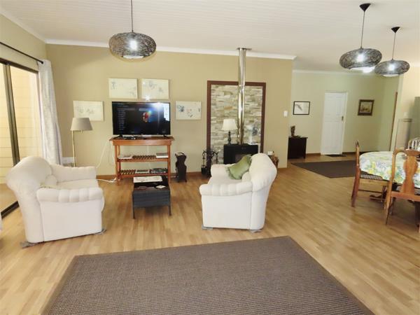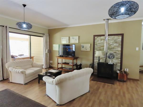 Step into a world of comfort and convenience as you explore the features of this remarkable home. Boasting three spacious bedrooms, each with its own ensuite bathroom, plus an additional guest toilet, this residence offers ample space for relaxation and entertainment. The open-plan design seamlessly integrates the indoor and outdoor living spaces, with the lounge area featuring a cozy fireplace, perfect for chilly evenings, and the kitchen equipped with modern amenities and a scullery for added convenience. Step outside to discover a sprawling outdoor yard and a wrap-around patio, providing the ideal setting for outdoor dining and enjoying the beauty of nature.
