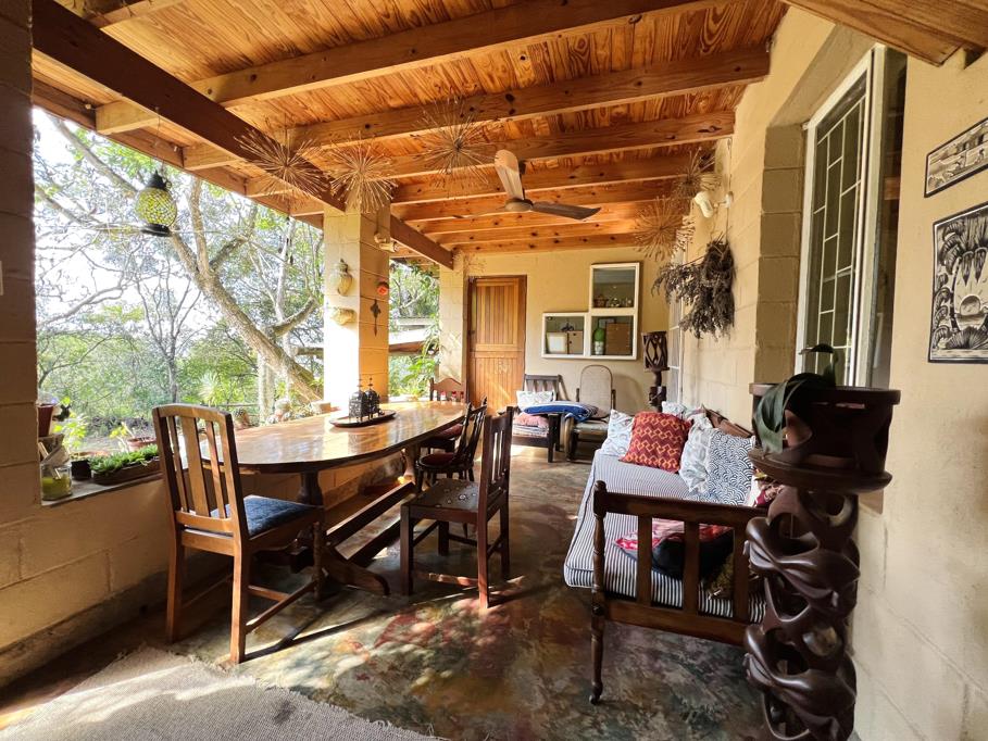 The main house boasts three double bedrooms and one bathroom, an open-plan kitchen, a laundry room, and a spacious veranda perfect for relaxing and entertaining. The property also includes a swimming pool, providing a refreshing retreat with stunning views of the surrounding bushland. Attached to the main house is a cozy studio apartment, complete with a kitchenette, open veranda, and bathroom, ideal for guests or rental income.