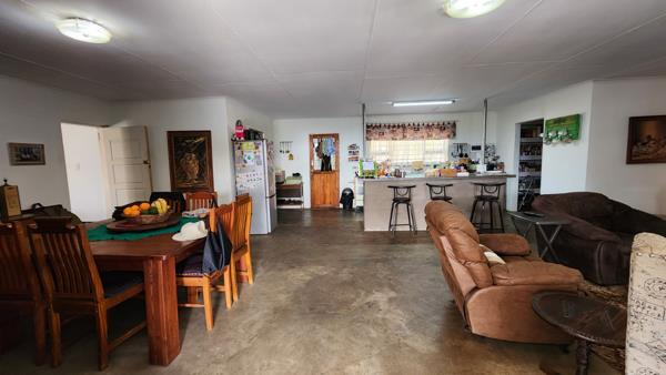 Discover the charm of this lovely farm-style home in Cairn, featuring a scenic mountain backdrop. This 2-bedroom, 2-bathroom residence offers a spacious open-plan kitchen with a center island and breakfast nook, a dining room, and a living room. Additional features include a pantry, laundry room, two storerooms, and a gas oven and stove. The home also boasts a 2-car garage, a carport, and a large patio perfect for family gatherings or weekend braais.
