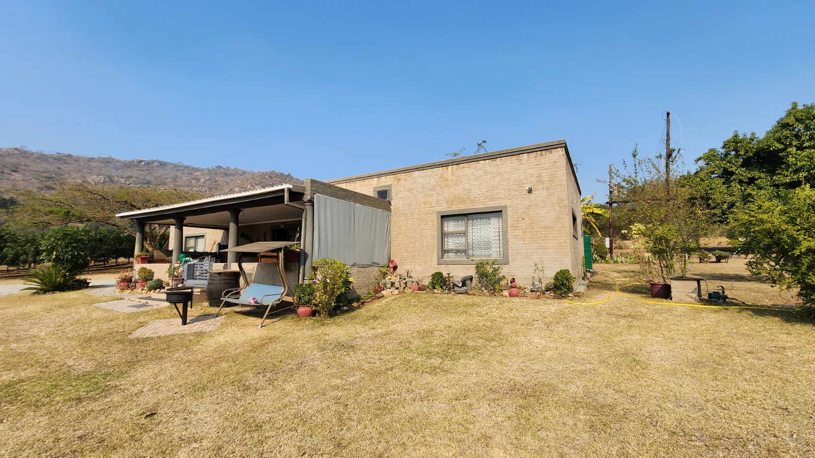 The property includes 210 mature Macadamia trees, over five years old and producing well. Enclosed by an electric fence and accessible through an automatic gate, this serene retreat offers security and tranquility. Enjoy breathtaking views from the patio, providing a peaceful spot to relax and unwind.