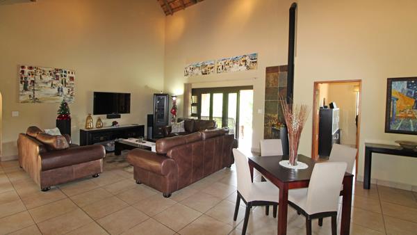 Nestled in the mountains with stunning views, this charming thatch roof family home offers 3 bedrooms, 2 bathrooms (one en-suite), a spacious open-plan kitchen, lounge, and dining area, plus a guest toilet. Features include a double garage, large workshop, boma, swimming pool, and braai area. Plus, a private bachelor cottage with its own braai, perfect for guests or Airbnb.