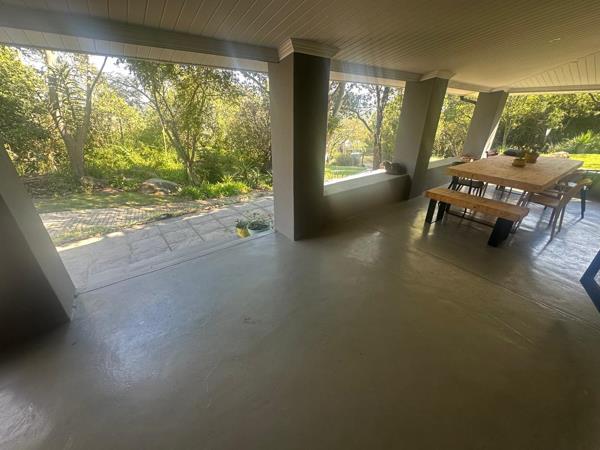 The undercover patio area invites the spectacular scenery and well-kept garden into the house.