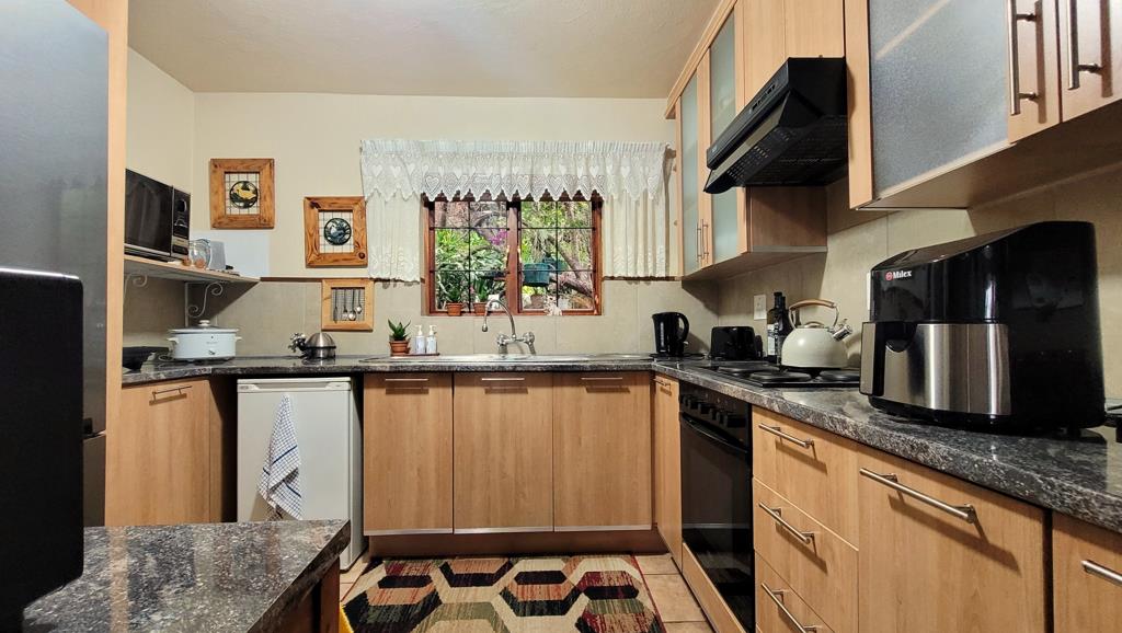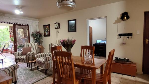 The property features three spacious bedrooms and two bathrooms (main en-suite), plus a study or optional 4th bedroom ideal for working from home or accommodating guests. The unit is neat and move-in ready, with a welcoming living area that flows seamlessly to a covered verandah boasting a built-in braai and a beautiful view perfect for relaxing or entertaining.