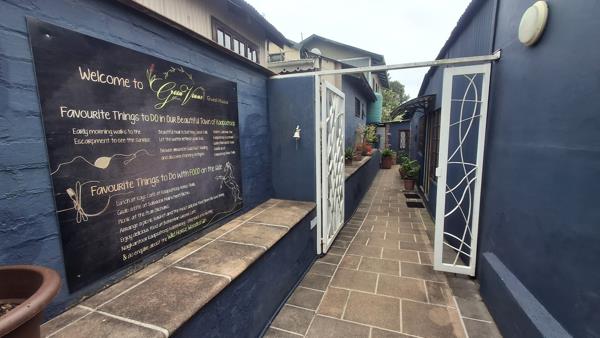 Discover a unique opportunity in the charming village of Kaapsche Hoop, presenting a distinctive property with significant potential. This inviting residence, currently operating as a guest house is marketed to be sold as a going concern. The property boasts a striking dark blue facade complemented by decorative veranda railings and a vibrant green entrance. Attractive landscaping and paved pathways enhance the welcoming exterior.