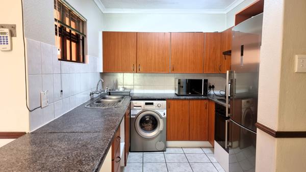 Introducing a meticulously maintained, fully tiled ground floor flat. Access the estate through a secure entrance leading to a covered carport. A few steps down take you to a charming paved walkway adorned with beautifully maintained gardens, guiding you to the front door.