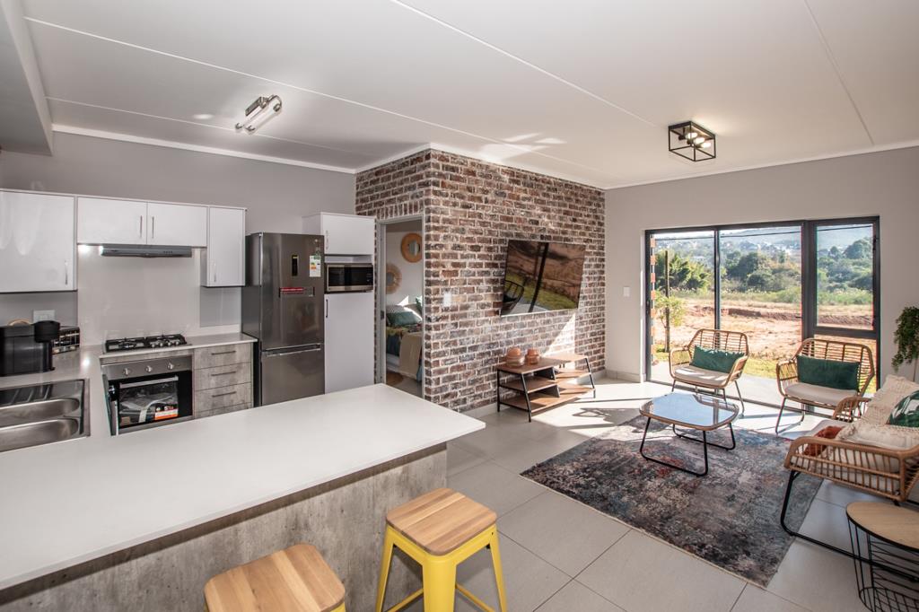 These ultra-modern residences feature an intelligent, open-plan design with two bedrooms and two bathrooms extending to a private patio that facilitates a seamless blend of contemporary urban living and natural immersion. Residents are granted private access to a rehabilitated greenbelt section with a dam, featuring planned facilities like secluded picnic installations, designated braai areas, an elevated boardwalk system, and educational indigenous trails.