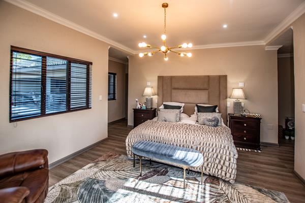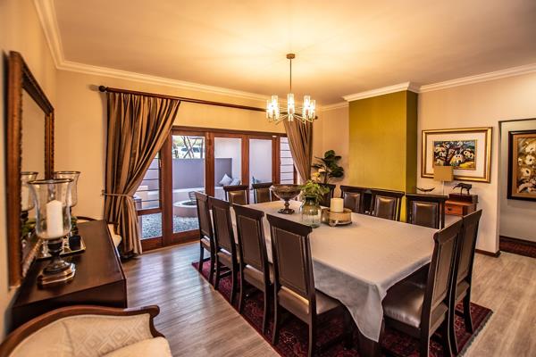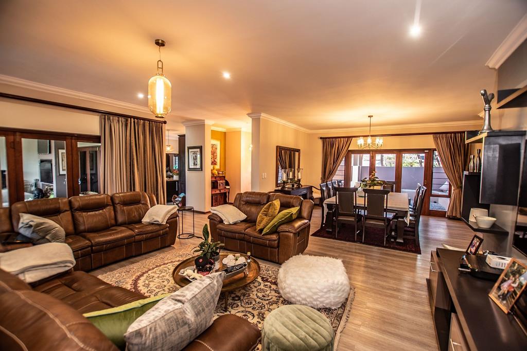 Set in ever popular Shandon Estate on a 1, 19 ha stand, this immaculate double storey executive home boasts a feature entrance which flows into generous open plan TV room and dining room with outside boma area which fuse effortlessly with a granite clad kitchen with gas stove, separate scullery and pantry and out onto a large covered patio with views.