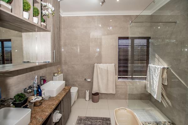 The upper level further hosts 4 spacious bedrooms with ample cupboards spotless modern bathrooms ( main en suite with walk in dressing room ) and linen room.