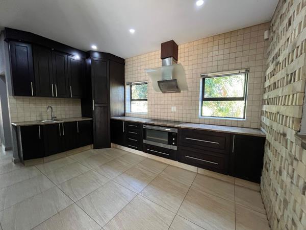 The spacious main living room is the heart of the home, with built-in cabinetry and stacking doors that open to a massive balcony overlooking your own private dam ideal for birdwatching and sunset views. The living room flows into a stunning indoor entertainment area with a built-in braai, bar, and access to the patio, boma, and pool all designed to embrace outdoor living.