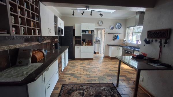 Discover this inviting family home in Sonheuwel Ext 1, Nelspruit, offering a generous 295.57 sqm of living space on a 1571.00 sqm erf. The interior boasts an open-plan design, seamlessly connecting the kitchen and living areas. The spacious kitchen features white cabinetry, dark countertops, and practical tiled flooring, complemented by a large window for natural light, track lighting, and a stainless steel gas range. Multiple living spaces, including a lounge and dining room, provide ample room for relaxation and entertaining, many featuring characterful vaulted wooden ceilings.