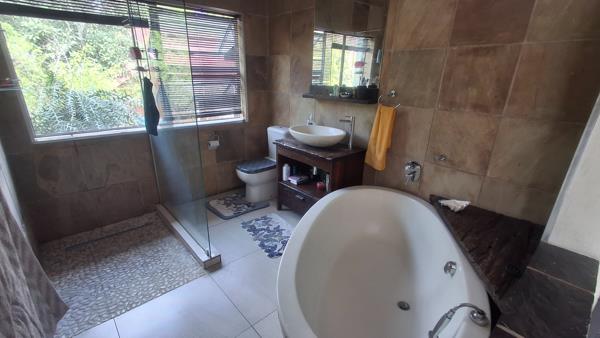 Step outside to a private oasis designed for outdoor living. The established garden surrounds a refreshing swimming pool, perfect for warm South African days. An elevated wooden deck and gazebo offer an ideal spot for alfresco dining and entertaining, complete with a built-in braai. Parking is well-catered for with a double garage and two additional parking spaces, and pets are welcome.