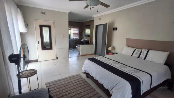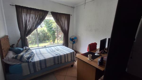 This residence offers four comfortable bedrooms and two bathrooms, with one being an en-suite for added privacy. Natural light fills the rooms, and one bedroom includes a dedicated desk area, perfect for a home office or study. The property also benefits from a separate flatlet, providing versatile accommodation options for guests or extended family, alongside a dedicated laundry room for convenience.
