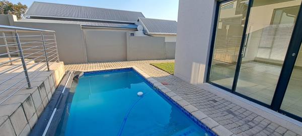It comes with a large kitchen with granite tops, a separate scullery / laundry, four plate gas hob with electric oven, open plan dining living area leading to the patio with a built in braai. Four bedrooms, four bath rooms, two of which are en-suit and it includes a guest toilet. For convenience there is staff facilities as well. Lots of natural light, and no maintenance needed. Low maintenance, established garden that is easy to maintain and a small swimming pool to enjoy. Ample stage space in all the rooms. This is well priced and ready to move in!