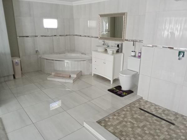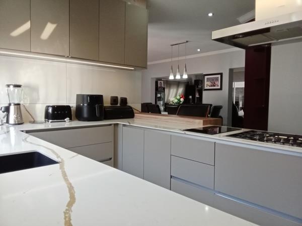 Offering 4 bedrooms, three of which is en-suite, 4.5 bathrooms, fully fitted kitchen with Caesarstone counter tops and separate scullery, open plan lounge and dining room, a fully enclosed braai room with fireplace for those cold winter evenings, with guest toilet, stacking sliding doors opening up to the back yard with a pool and a double lock up garage, this home offers everything you will need in a family home.