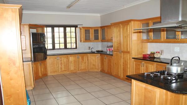 The home offers 4 Bedrooms, 3 bathrooms and 3 garages. This property offers a large kitchen with ample built-in-cupboard, a gas hob and eye level oven.