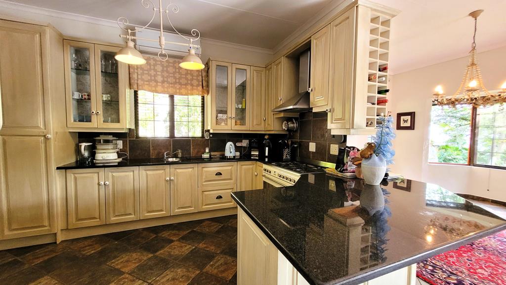 This low-maintenance property in a sought-after Sonheuwel Estate features 3 spacious bedrooms and 2 beautifully finished bathrooms and a separate guest suite. The home offers generous open-plan living areas that flow seamlessly to the dining room with sliding and stacking wooden doors opening onto a covered patio with a built-in braai. The wooden deck with a sparkling pool overlooks a beautifully landscaped garden, creating the ideal space for entertaining or relaxing.