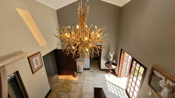 This impressive 5-bedroom, 4.5-bathroom double-storey home, with commanding views offers a wealth of character and charm. Upon arrival, you are captivated by the grandeur of the double-volume foyer, adorned with an exquisite twig chandelier. The property has a stunning entertainment area, that seamlessly extends to a pool and deck. The kitchen boasts granite countertops, a gas hob, a double oven, and a pantry. The living areas and kitchen seamlessly blend with the extensive garden, creating a harmonious indoor-outdoor living space. Large stacking doors flood the interior with natural light and offer exceptional views of the Lowveld landscape.