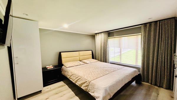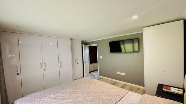 Both bedrooms are well-sized, with the main bedroom offering an en-suite bathroom for added convenience. The apartment includes a single automated garage and is situated in a well-secured estate known for its peaceful atmosphere and excellent access control.
